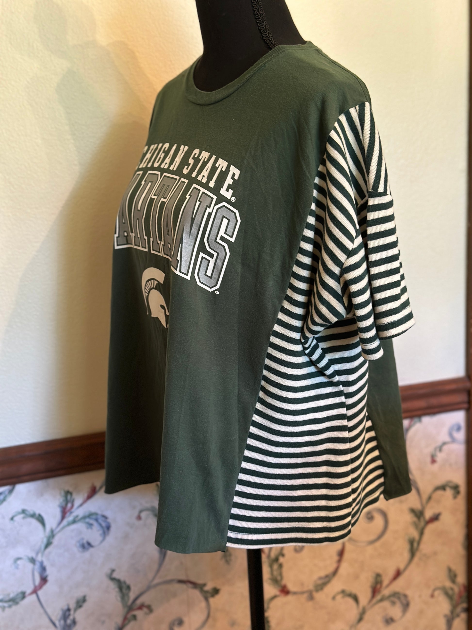 Upcycled Michigan State Spartans T-shirt with Short Sleeve Sweater